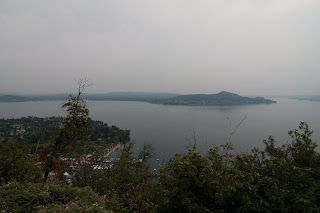Cuando llegamos a Arona la verdad es que el pueblo nos pareció pche. El lago era muy bonito pero hacía un día feo, de niebla amenazando agua, con lo que deslucía bastante. Lo más majo del lago era la isla central, que con un castillo en su cima hacía una bonita vista desde la orilla.